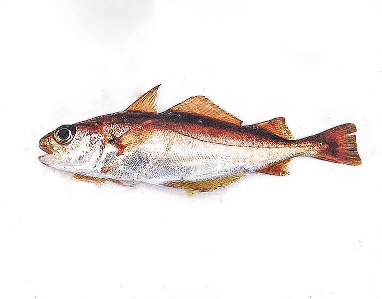 A Kabeljauw.B Dwergbolk.C Steenbolk.D Wijting.